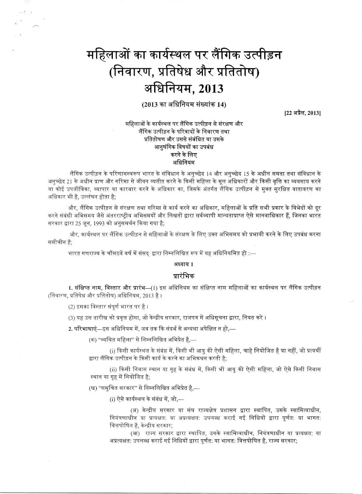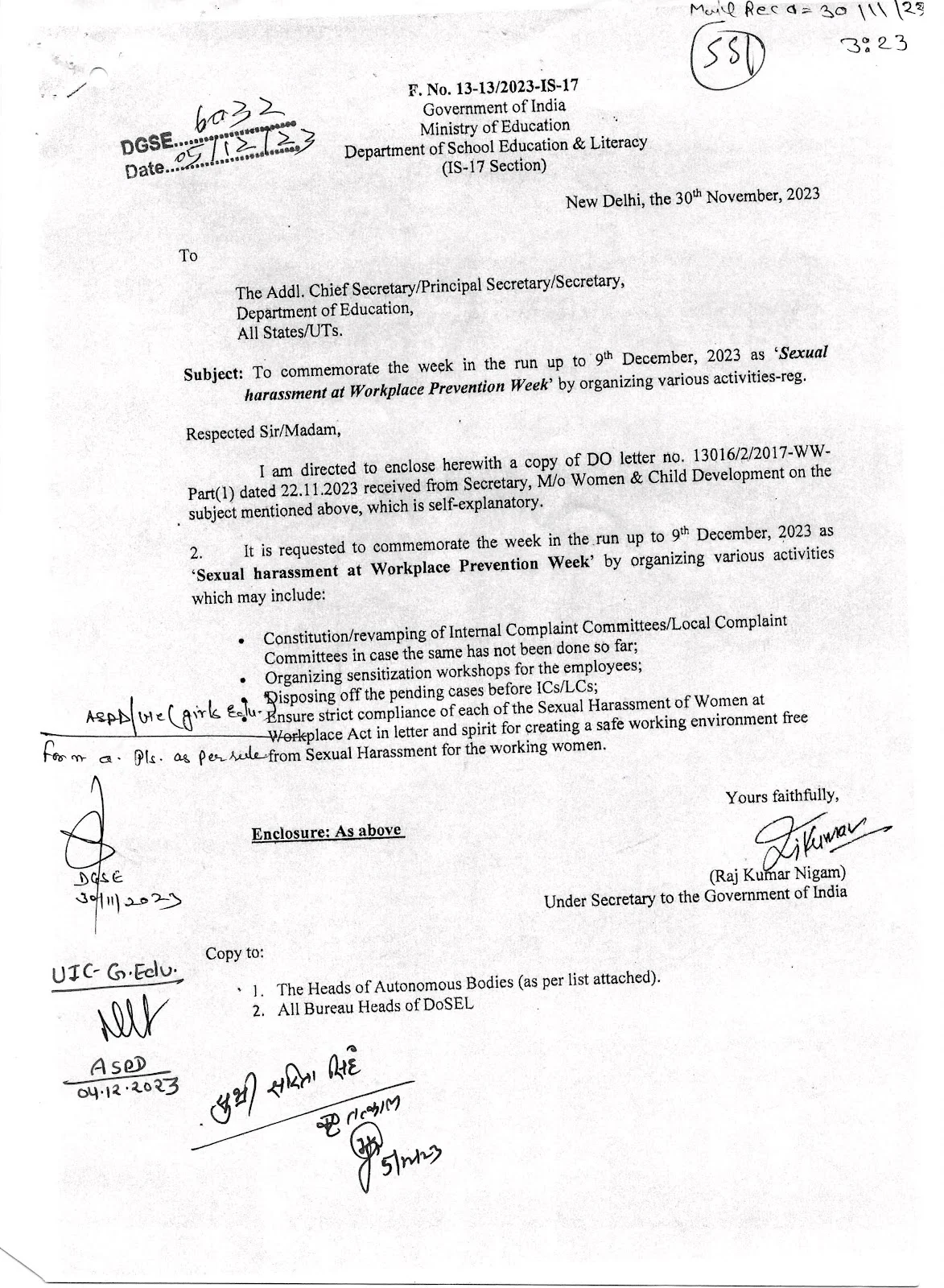 "Sexual Harassment at Workplace Prevention Week" अभियान चलाये जाने के सम्बन्ध में