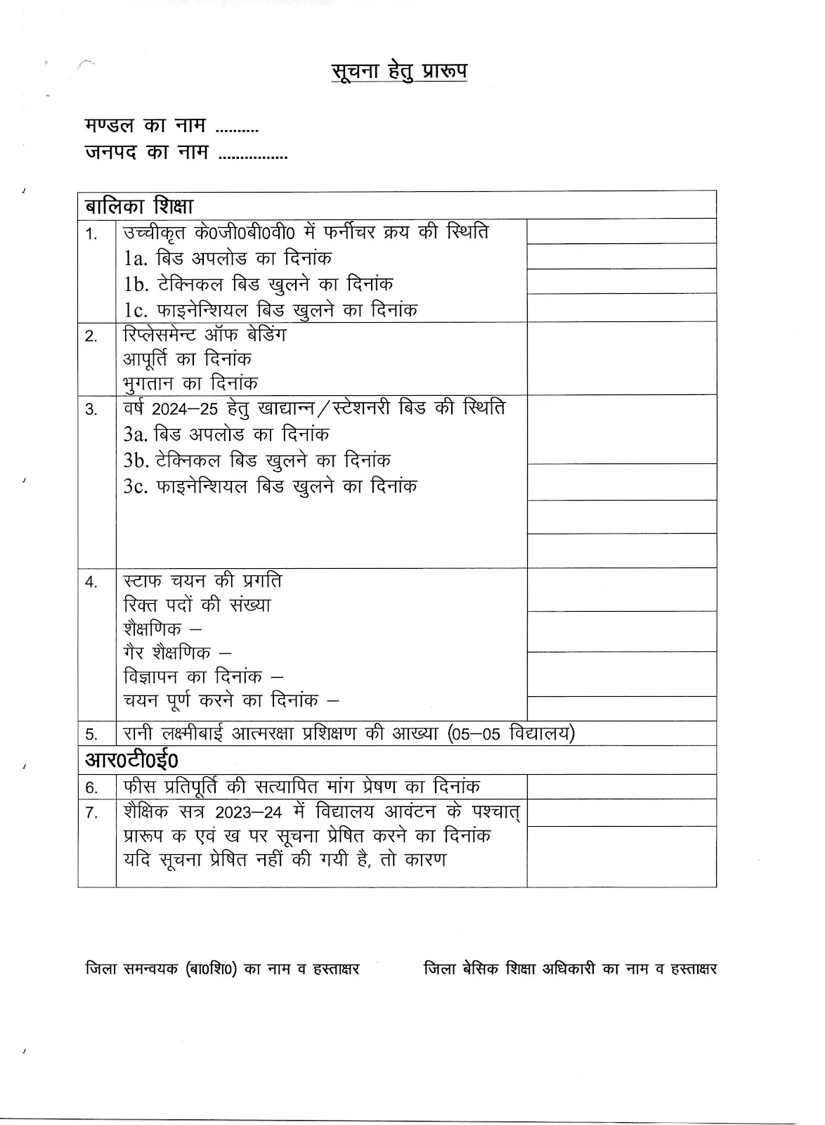 बालिका शिक्षा एवं RTE से सम्बन्धित सूचनाएं उपलब्ध कराने के सम्बन्ध में