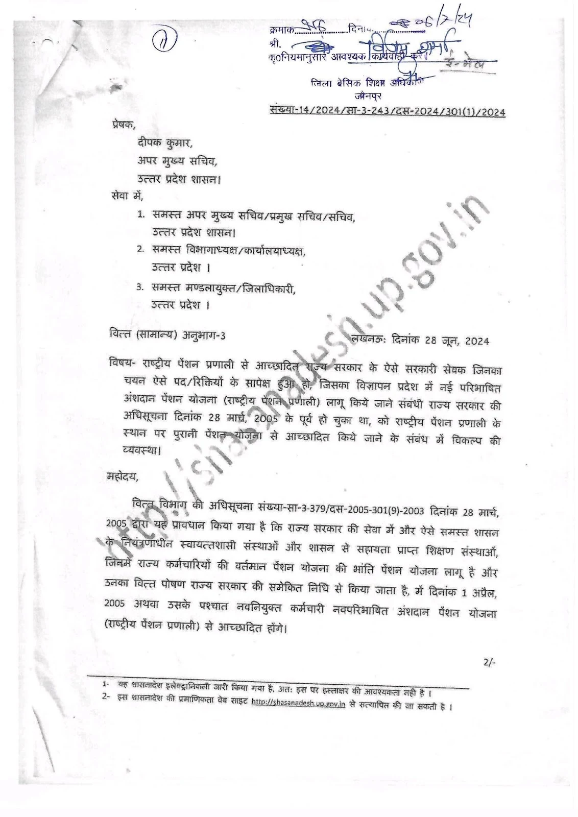 OPS हेतु विकल्प पत्र भरे जाने के संबंध में विज्ञप्ति जारी