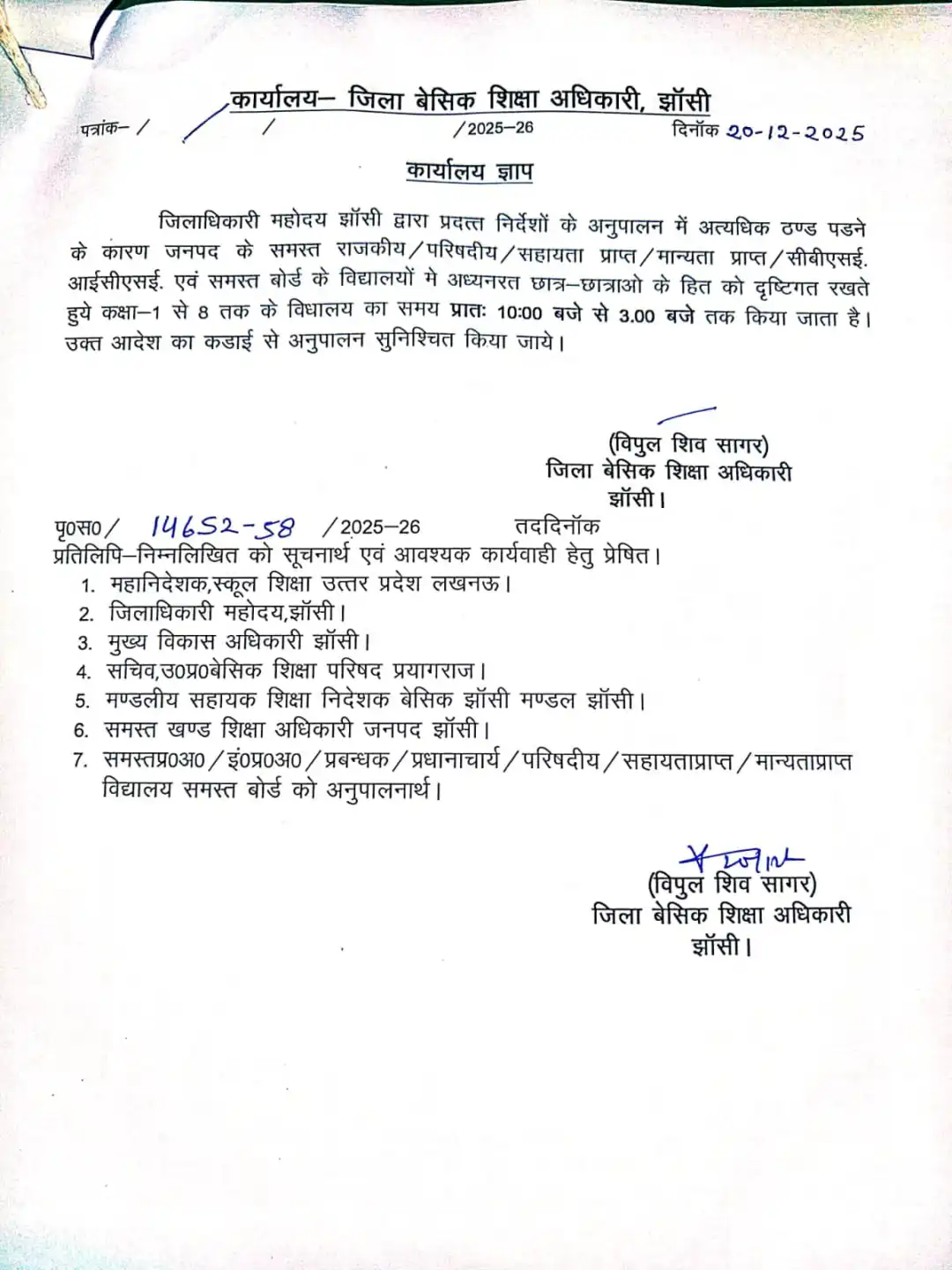 लखनऊ: School Closed News Today: उत्तर प्रदेश में कड़ाके की ठंड और शीतलहर के चलते कई जिलों के स्कूलों में अवकाश घोषित किया गया है। 22 से 24 दिसंबर तक कुछ जिलों में स्कूल बंद रहेंगे, वहीं कुछ जिलों में स्कूलों की टाइमिंग बदल दी गई है।