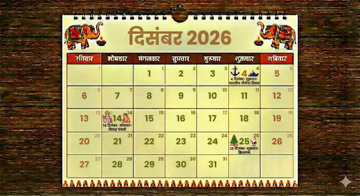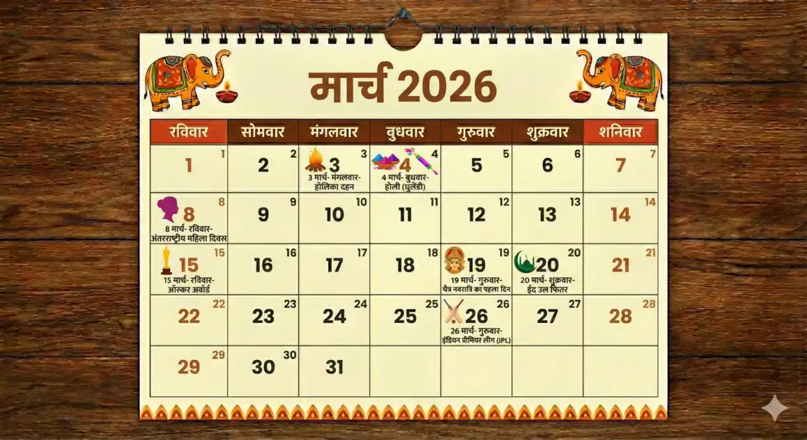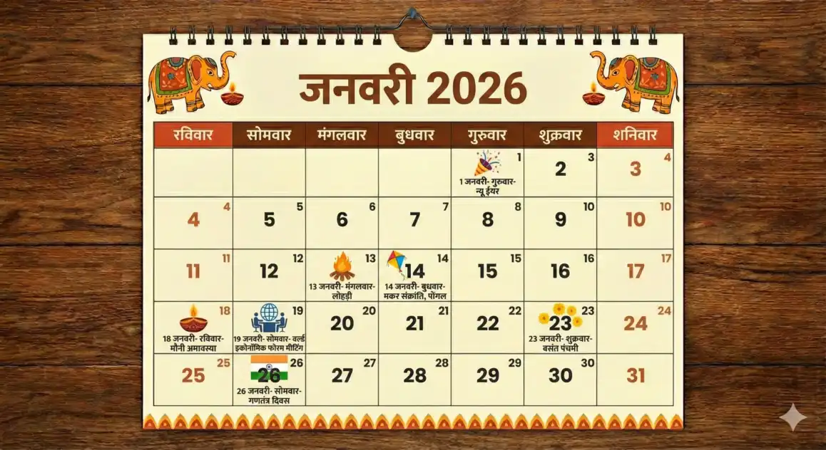 अगर आप भी साल 2026 में आने वाले इवेंट्स, त्योहारों और छुट्टियोंक बारे में जानना चाहते हैं, तो इस साल का यह कैलेंडर (2026 Calendar) जरूर देखें। इसमें आपको हर महीने के हिसाब से सभी व्रत-त्योहार और इवेंट्स के बारे में आसानी से पता चल जाएगा। आइए देखें साल 2026 का कैलेंडर।